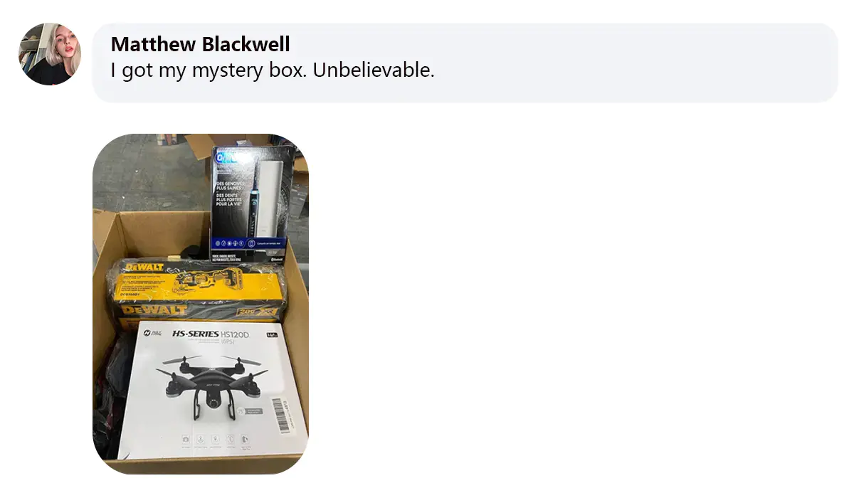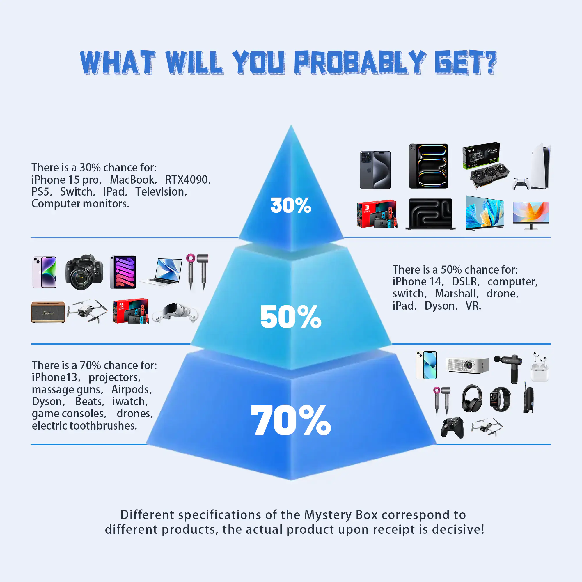 Note:The mystery box contains large electronic products, household appliances, large toys, outdoor equipment and various smart electronic devices